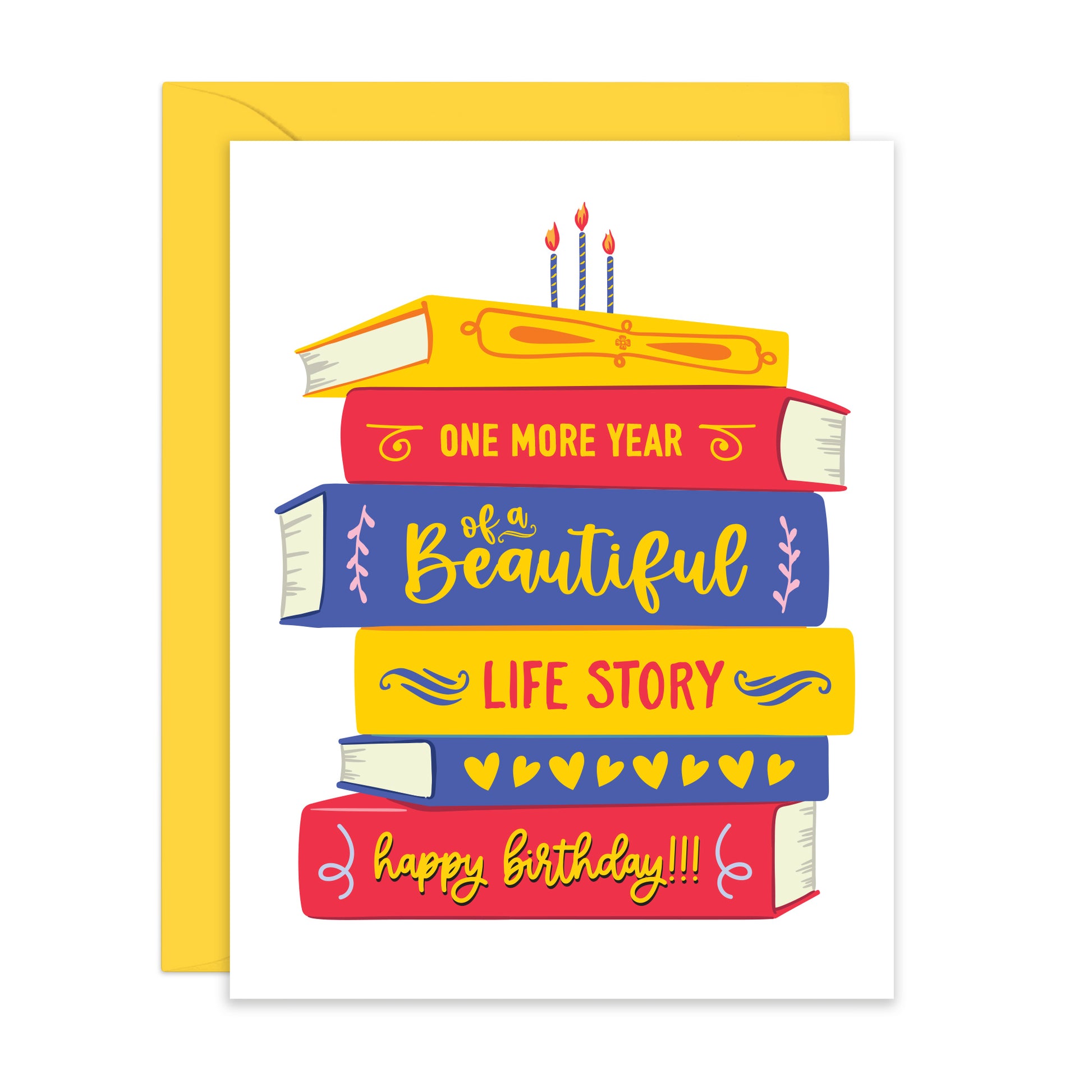 ONE MORE YEAR OF A BEAUTIFUL LIFE STORY. The perfect bookish birthday card.