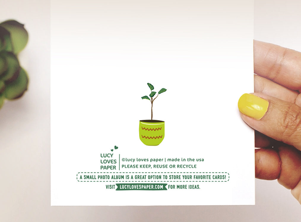 When I started Lucy Loves Paper, I wanted to find ways to encourage people to keep or reuse their cards. That's why every Lucy Loves Paper card shows on their back, a small text box with ideas on how to reuse or store them! I hope that people like my friend get inspired to keep these little works of art spreading joy for a long time. Check out of my FAVORITE IDEAS on how to store or give your beloved cards a second life.