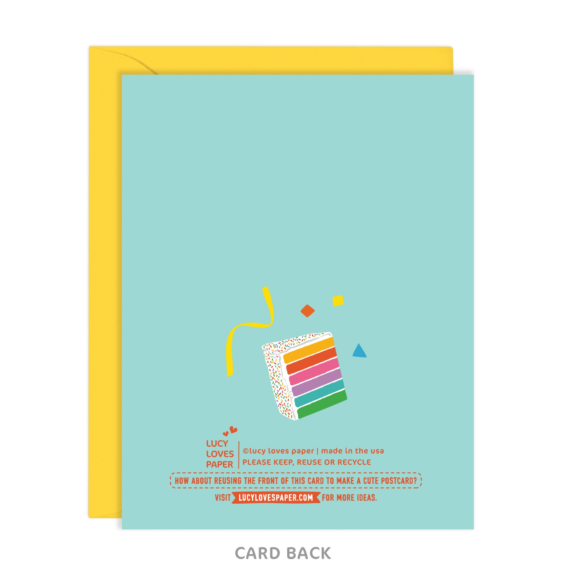 - Back shows matching design detail + suggestion to repurpose/store cards