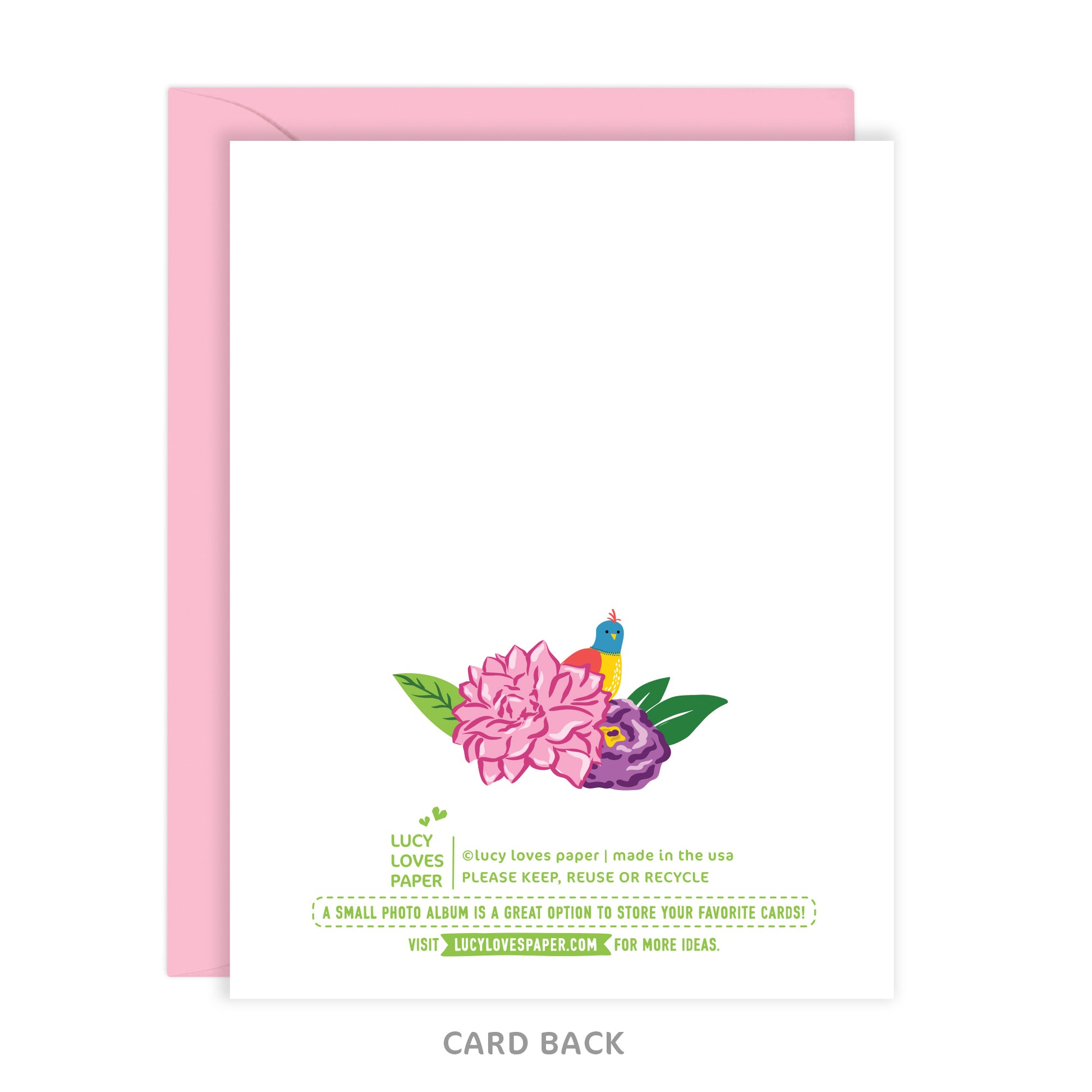 - White matte card stock + pink envelope